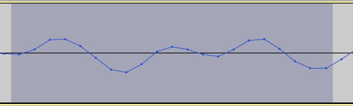 The y-axis represents amplitude, what we experience as loudness or volume. By default, the y-axis measures volume on a vertical linear scale from -1 to 1: the -1 and 1 extremes represent the loudest possible recorded sound without distortion, while 0 represents silence. So silence begins as a flat line, and the sound will get taller and deeper as it increases in intensity. For more information on why some of the numbers are negative, check out Jeffrey Hass’ very short primer to acoustics.