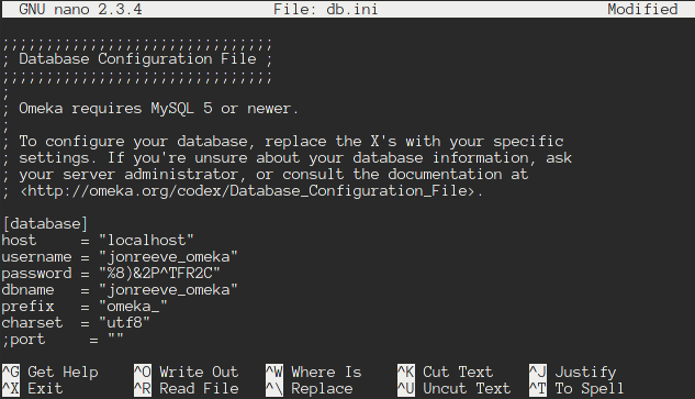 Now let’s edit the db.ini file. Unless you’re already comfortable with a power editor like Vim, we’re going to use the editor Nano: