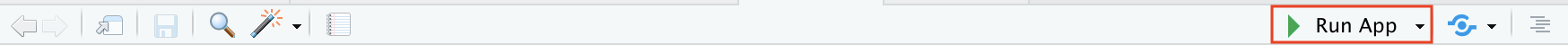 Once you have created these items, resave the app.R file. RStudio will now recognise it as a Shiny application, and the icons at the top of the panel will change, giving a ‘Run App’ option (Figure 2). If you click Run App, it will run the application in a new window using RStudio’s in-built browser.